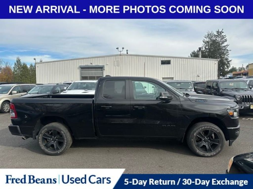 Recent Arrival! 2022 Ram 1500 Big Horn/Lone Star 3.6L V6 24V VVT 8-Speed Automatic 4WD 4D Quad Cab Diamond Black Crystal Pearlcoat Great Service History, Free First Oil Change, Accent Color Premium Power Mirrors, Anti-Spin Differential Rear Axle, Apple CarPlay, Big Horn Badge, Black Exterior Truck Badging, Black Headlamp Bezels, Black Interior Accents, Black Painted Exterior Mirrors Caps, Body Color Front Bumper, Body Color Rear Bumper w/Step Pads, Deluxe Cloth Bucket Seats, Dual Exhaust w/Black Tips, Google Android Auto, Grille Surround 1 Black Texture 2 Black, Heated Front Seats, Heated Steering Wheel, Night Edition, Quick Order Package 23Z Big Horn, Wheels: 20" x 9.0" Premium Paint/Polished.